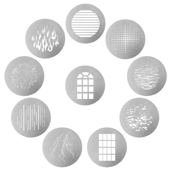 Маски устанавливаются в держатель оптической насадки Spotlight и проецируют чёткие или намеренно размягчённые контуры — всё регулируется фокусировкой и расстоянием до поверхности. Жаропрочная сталь обеспечивает долговечность, стабильную геометрию и чистый световой край при длительной работе. Совместимость с насадками Aputure Spotlight разных углов (например, 19°/26°/36°) позволяет варьировать масштаб рисунка и плотность света под задачу. Набор особенно полезен для портретов, предметной съёмки, клипов и рекламы: создаёт «свет через окно», эффект «жалюзи», динамичные акценты на фоне и выразительные световые пятна, расширяя креативный диапазон.