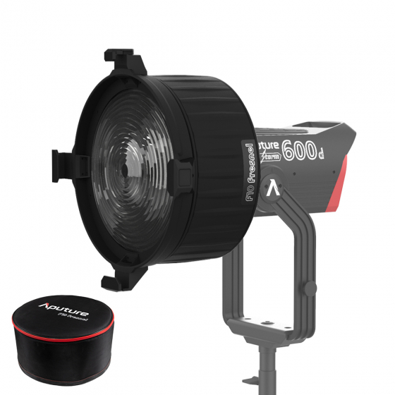 Aputure Fresnel F10 — крупная стеклянная линза Френеля диаметром 250 мм для источников света с байонетом Bowens, создающая мощный, управляемый пучок с плавной регулировкой угла от 15° до 45°. Оптическая схема из двух линз собирает весь свет в более направленный узкий пучок. С прибором Aputure LS 600d достигается уровень, сопоставимый с традиционными вольфрамовыми приборами высокой мощности. Характер света остаётся кинематографичным — свет равномерно распределен по всей площади пучка. С этой линзой можно эмитировать направленный свет яркого солнца в окно.