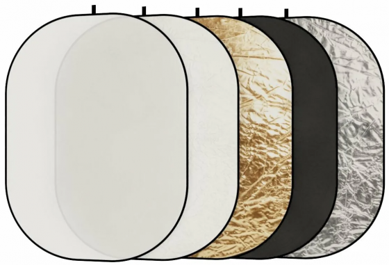 Отражатель Grifon R5-0912 - это универсальный набор отражателей «5 в 1» размером 92×122 см для студийной и уличной съемки, помогающий быстро формировать мягкий, контролируемый свет. В комплекте полупрозрачная основа на упругом обруче и двусторонний чехол на молнии: снаружи белая и серебристая поверхности, внутри — черная и золотая, что вместе с диффузором дает пять рабочих вариантов. Белая сторона обеспечивает ровную нейтральную подсветку, серебристая добавляет яркости и контраста, а золотая придает теплый тон коже и предметам. Полупрозрачная ткань смягчает жесткое солнце или импульс, превращая его в равномерный свет для портретов и предметной съемки. Черная поверхность используется для углубления теней и снижения паразитных засветок - это делается методом отсечения ненужного света от предмета съемки. Овальная форма с габаритами 92×122 см удобна для ростовых и поясных кадров. В сложенном виде отражатель компактно убирается в чехол диаметром 43 см. Отражатель быстро складывается и раскладывается.