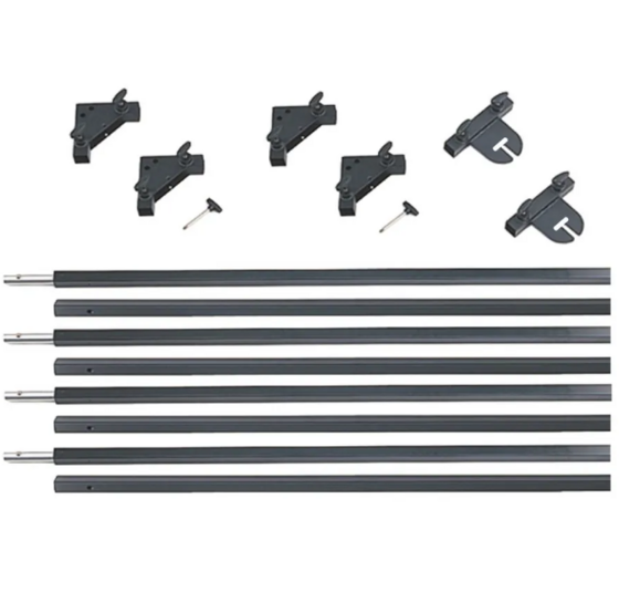 Разборная рама Butterfly из прочных алюминиевых трубок с 30 мм квадратным сечением, которые просто соединяются и разбираются для удобства использования. В комплекте крепежные петли, совместимые с крепежными головками типа Grip Hesd для установки на стойки.
