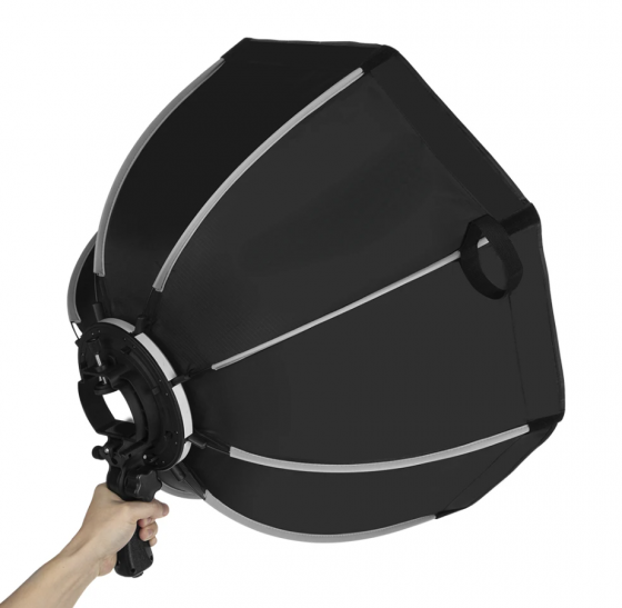 Устройство легко крепится непосредственно на головку вспышки с помощью удобного фиксатора на липучке или резинке. Компактные размеры позволяют использовать октобокс как в студии, так и на выездных съемках, при этом он практически не добавляет веса к вашему оборудованию. Внутренняя отражающая поверхность максимально эффективно использует световой поток, а внешний диффузор рассеивает свет, делая его мягким и объемным. Октобокс идеально подходит для портретной съемки, создавая профессиональное освещение без необходимости использования громоздких студийных приборов. Он помогает избежать эффекта "плоского" света от прямой вспышки, добавляет объем лицу и подчеркивает текстуры. Модификатор легко складывается и занимает минимум места в сумке фотографа, что делает его незаменимым аксессуаром для мобильной съемки событий, свадеб, портретов и репортажей.